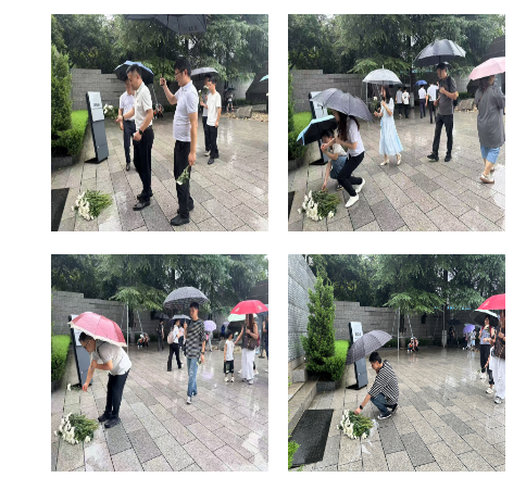 (圖片說明:黨員們向大屠殺遇難同胞獻花,寄托哀思。)
