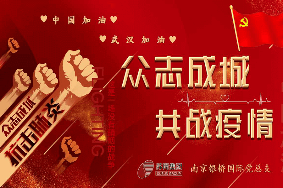 繼向革命老區(qū)、江寧濱江開發(fā)區(qū)、中華門街道和有關(guān)業(yè)務(wù)單位捐贈數(shù)十萬元物資后,2020年3月6日下午,南京銀橋國際黨總支在蘇商集團(tuán)總部舉行“助力武漢”捐款活動(dòng)。蘇商集團(tuán)董事長陳家俊先生、黨總支書記陳雪梅女士、集團(tuán)本部和南京銀橋國際全體黨員、積極分子以及干部、員工共40余人參加了捐款活動(dòng),共募集款項(xiàng)近兩萬元。在這次捐款活動(dòng)中,全體黨員和積極分子均主動(dòng)捐款,無一缺席;非黨員員工也紛紛獻(xiàn)出自己的愛心,連剛?cè)肼殠滋斓膯T工也主動(dòng)捐款;有的員工因工作錯(cuò)過了捐款活動(dòng),事后特地補(bǔ)交了捐款;多名退休的老同志在家中聽說了捐款活動(dòng),主動(dòng)打電話來要求捐款。